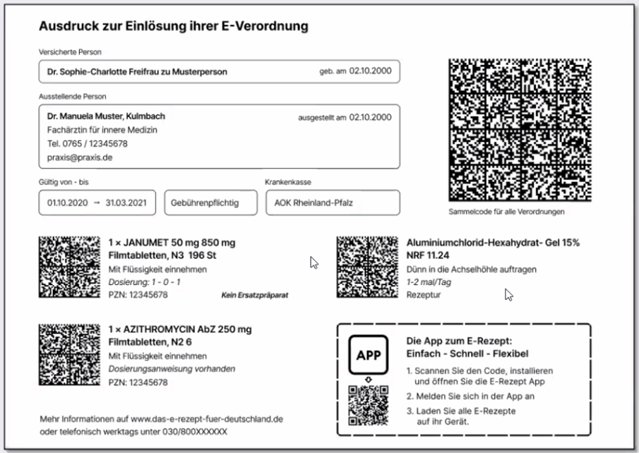 Ausgangspunkt der Mauve-Lösung ist die E-Verordnung, die der Patient von seinem Arzt erhält und die dem alten Rezept entspricht. Das Herzstück der E-Verordnung sind die maximal vier Barcodes auf der E-Verordnung. Die kleineren Barcodes entsprechen jeweils einer Verordnungszeile des klassischen Rezepts. Der große Barcode wiederum ist ein Sammelbarcode, der alle Verordnungen zusammenfasst und der es ermöglicht, dass nur einmal gescannt werden muss. Die Barcodes selbst enthalten keine pharmazeutischen Daten, sondern sind nur Identifizierer, um auf den eigentlichen Inhalt des Rezepts, der in der Telematik Infrastruktur liegt, zuzugreifen.
