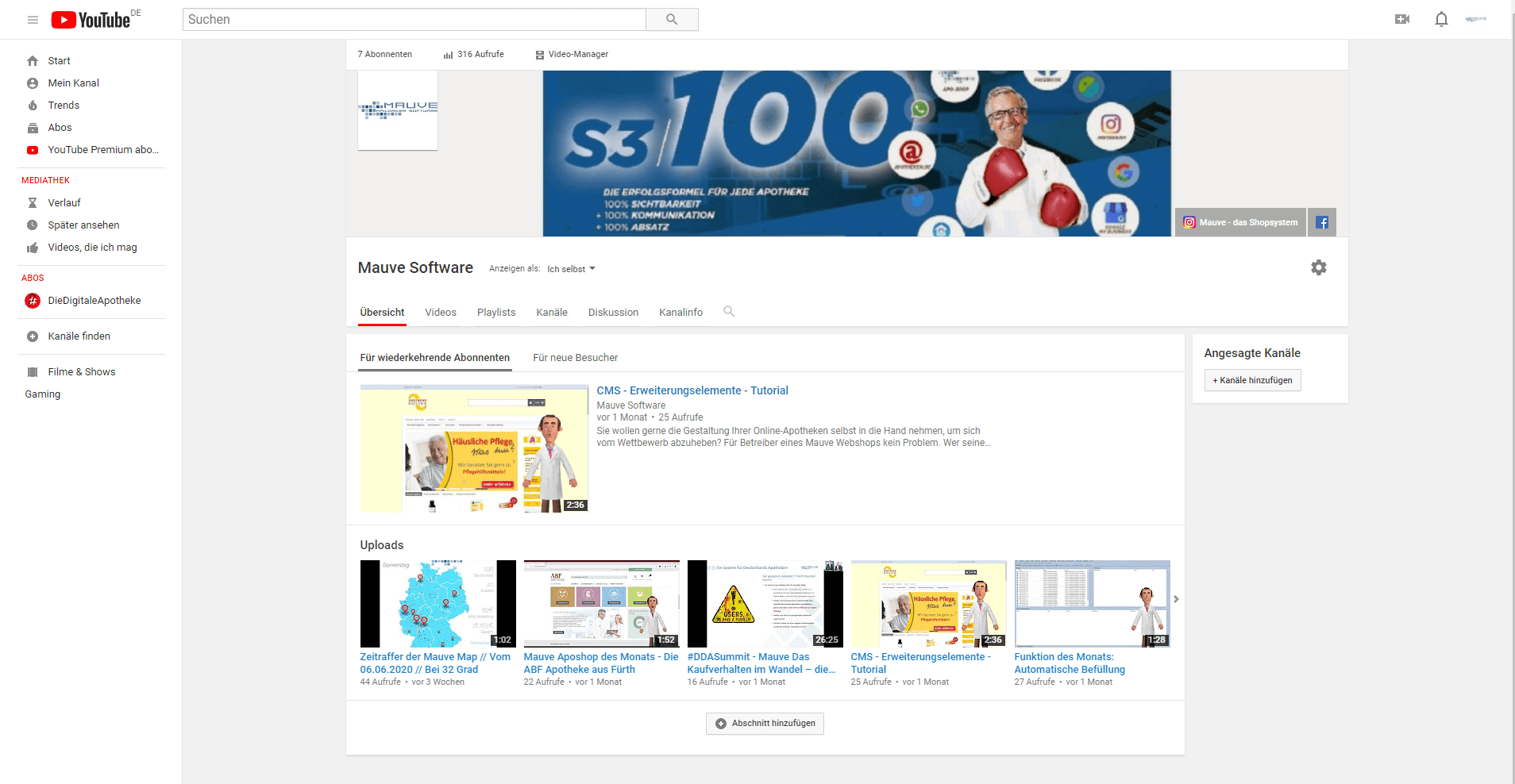 Folgen Sie unserem Youtube-Kanal und bleiben Sie immer bestens informiert.