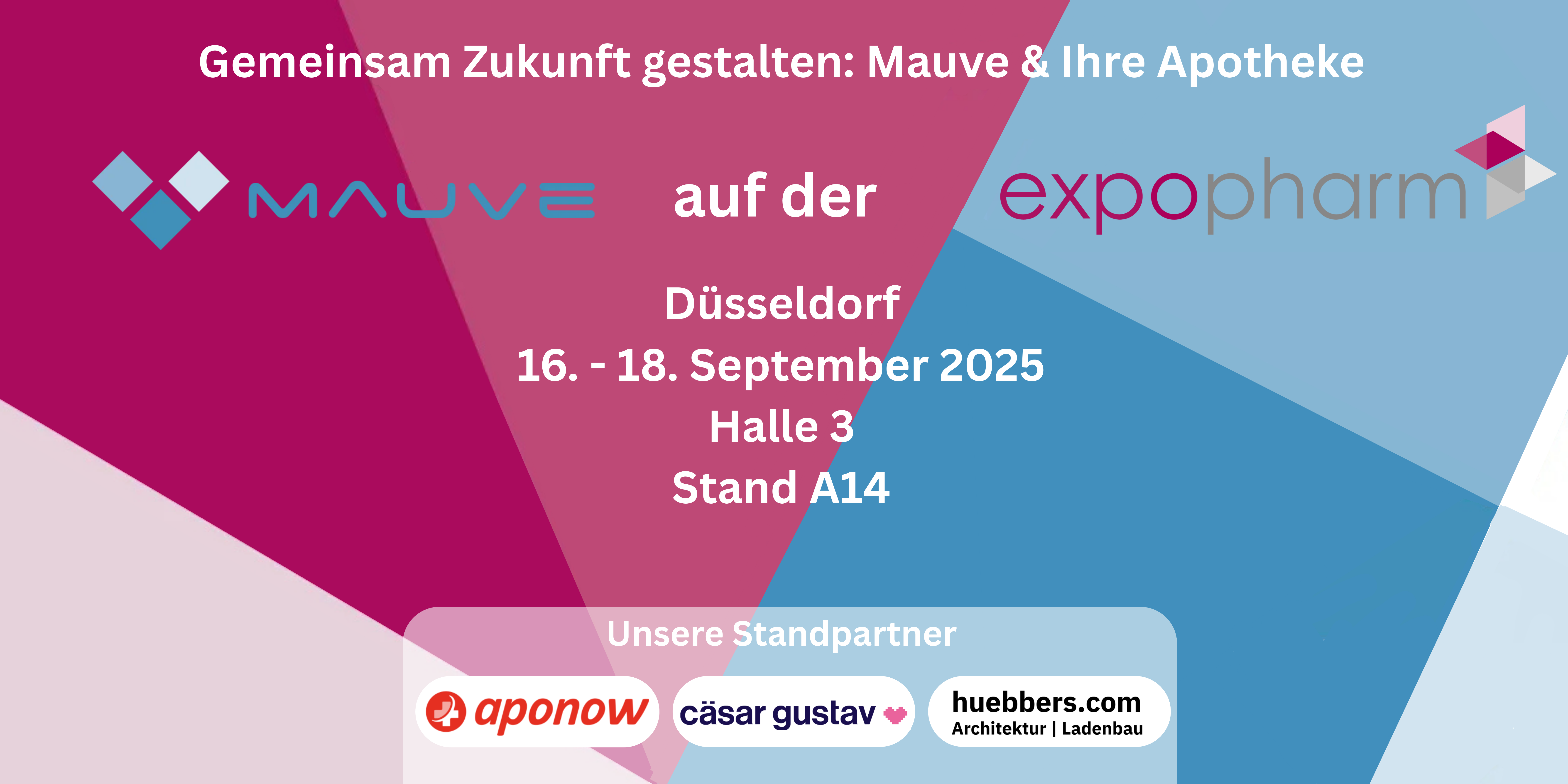 Haben Sie schon Ihren Terminplan für die expopharm 2025 vom 16. bis 18 September 2025 in Düsseldorf gemacht? Dann vergessen Sie auf keinen Fall auch einen Besuch auf dem Mauve Stand Halle 3 /Stand A 14 einzuplanen. Neben neuen Produkthighlights wie der Mauve Kasse, dem Mauve ApoTerminal mit automatisierter Rahmenvertragsprüfung, der Mauve ApoApp und M-Filiale Plus warten noch viele spannende Themen und Insights auf Sie. Zusammen mit unseren Partner aponow, der Digitalagentur cäsar gustav und huebbers.com Archirektur | Ladenbau beantworten wir alle Ihre Fragen rund um das Thema Online-Apotheke.